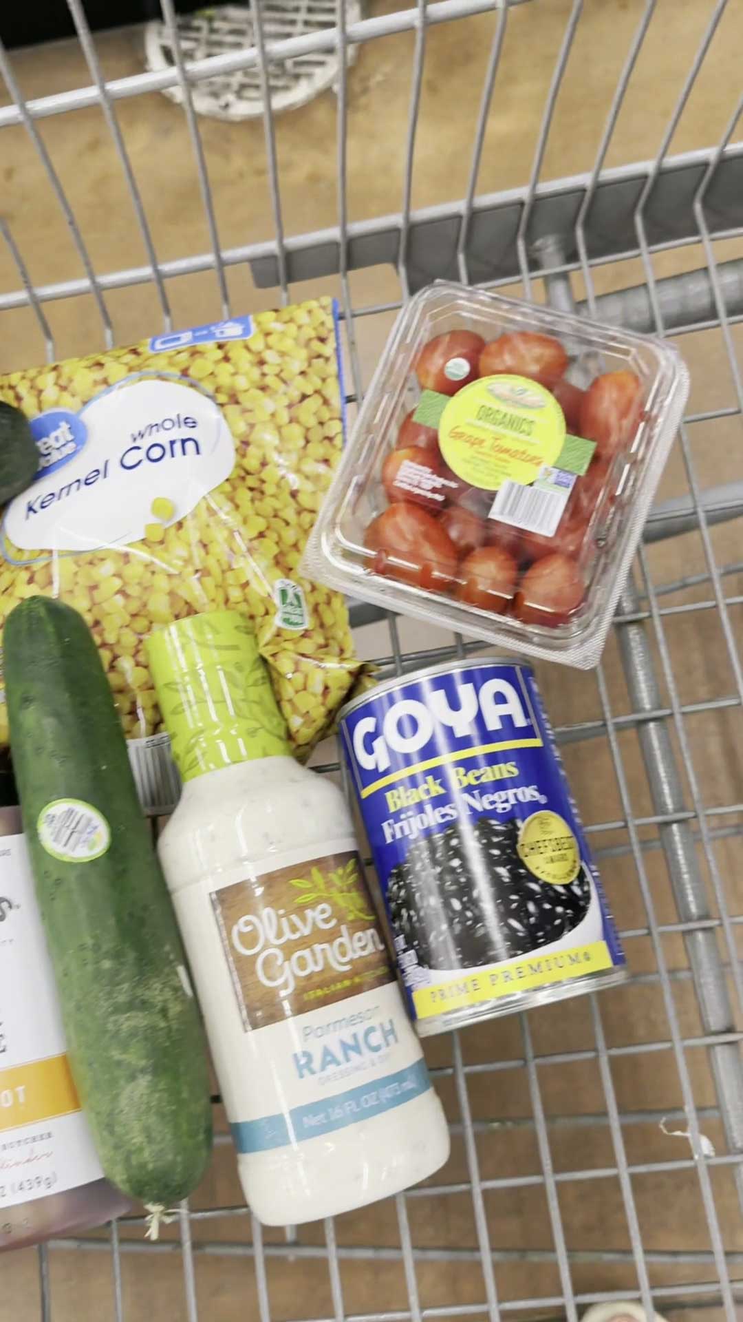 - Mix Your Base: Combine the lettuce, cucumber, tomatoes, avocado, corn, and black beans in a large bowl.