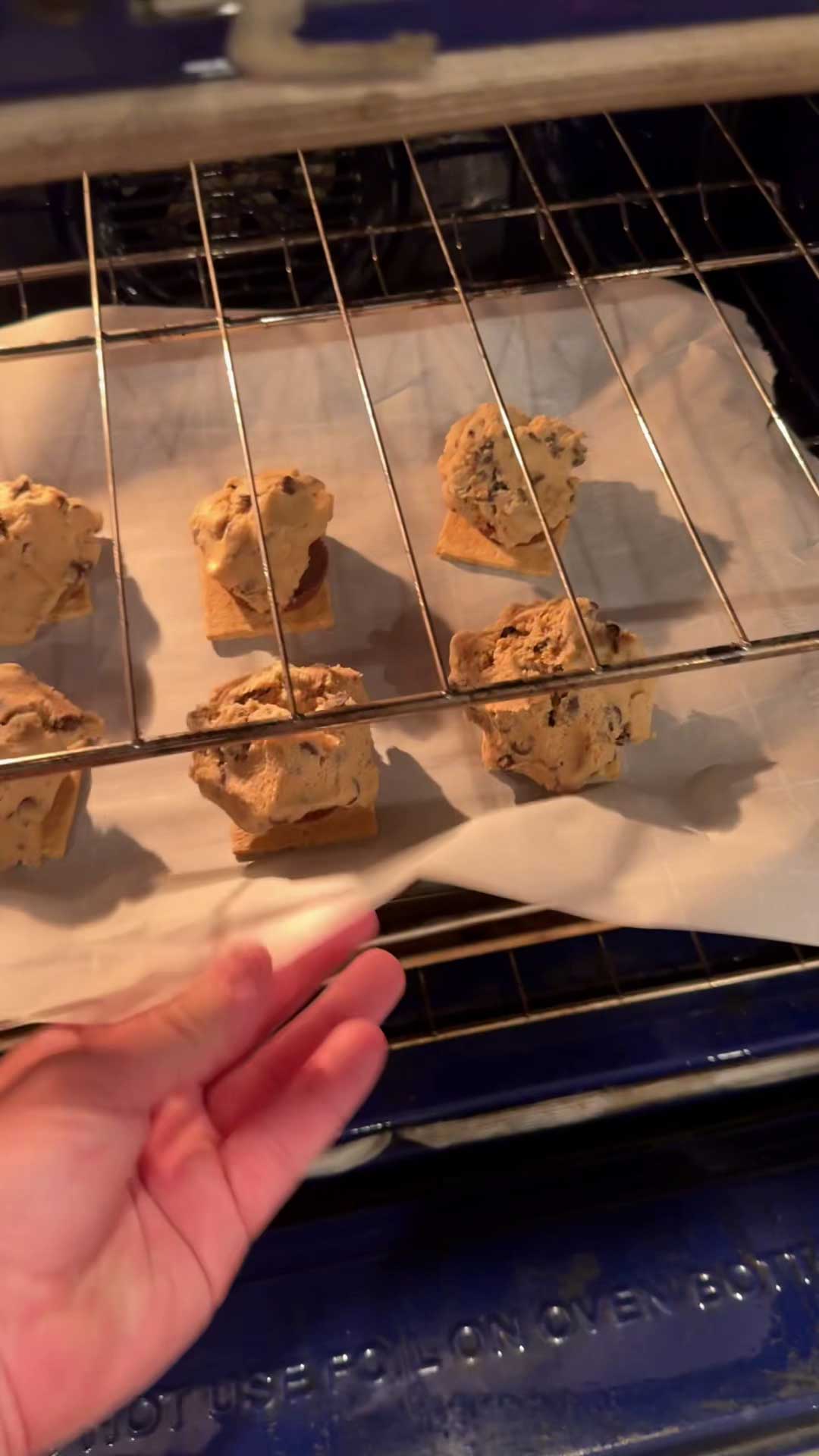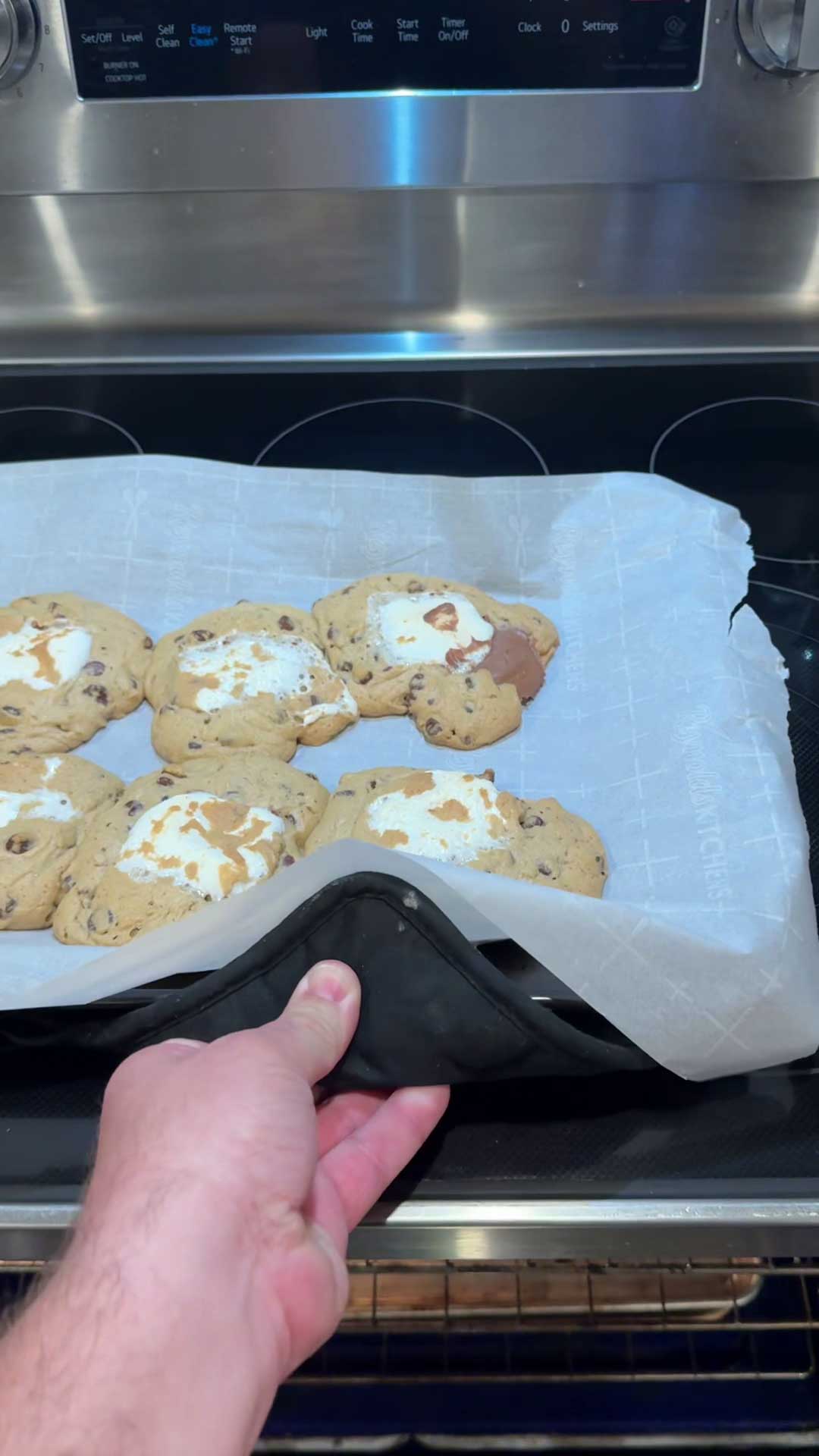 - Bake until the cookie dough is golden brown and the marshmallow is perfectly gooey.