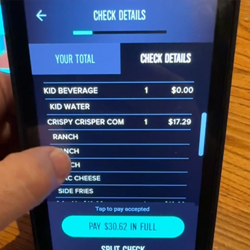 The total cost for the six chicken crispers meal is mentioned as $17, and with the additional items (mac and cheese, fries) the chicken sandwich, salad, fries, and drink 10.99 the total comes to $28 before tax. Including tax, the final amount is $30.62 then your tip!