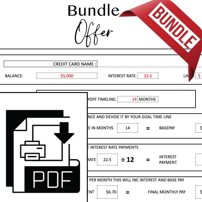 Financial Planning Bundle Offer (14 PDFs) Financial Planning Bundle Offer (14 PDFs) Was $13.95 Now $6.95 Sale Unlock complete control over your finances with this comprehensive bundle of 14 easy-to-use PDFs designed to help you manage, track, and optimize your financial journey. Whether you’re looking to budget, track expenses, pay off debt, or save for future goals, this bundle includes everything you need to get started and stay on track.Included Sheets:Budget PlannerMonthly Budget PlannerExpense TrackerDebt TrackerCredit Card Debt Payoff TrackerCredit Card Payoff PlanPayoff TrackerSavings ChallengeMonthly Cleaning ListGrocery ListWeekly Meal PlannerMoney RoutineExpense ListFinancial Goal PlannerWhy Choose the Financial Planning Bundle?Comprehensive: Everything you need in one easy-to-use set of tools.Customizable: Tailor each sheet to your unique financial situation.Organized: Never miss a payment, a savings goal, or an important expense again.Motivating: Stay on track with clear goals and actionable steps.All-in-one Solution: From budgeting to paying off debt to meal planning, it’s all covered. Enter an amount $ Add To Cart Buy Now