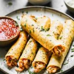 Easy homemade Chicken Taquitos made with shredded chicken, cheddar cheese, and a creamy salsa blend rolled in tortillas and baked or fried until crispy.Β